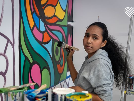 Dziś, oprócz codziennej walki o stabilizację, dzielą się tym, co mają najpiękniejsze – tworzą murale inspirowane kolumbijską kulturą, przyrodą i emocjami, ale też doskonale dopasowane do przestrzeni, w której powstają.